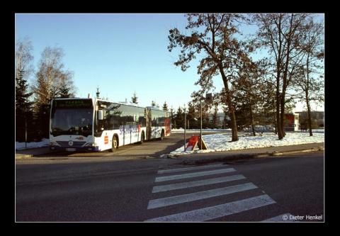Es verkehren Citaros in verschiedenen Größen, auch Gelenksbusse sind