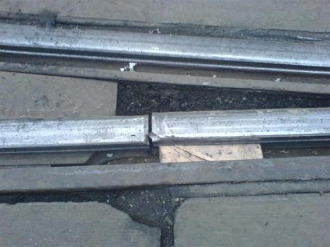 Die gebrochene Zunge wurde wieder angeschweißt, die Weiche verkeilt