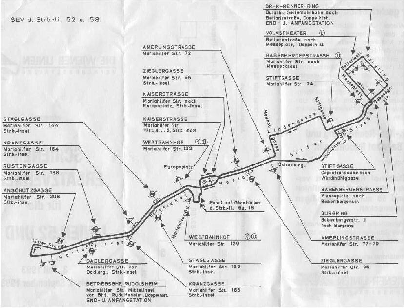 Soeben habe ich beim Ausmisten das Infoblatt zum SEV der Linien 52 und 58 aus dem Jahr 1993 gefunden.