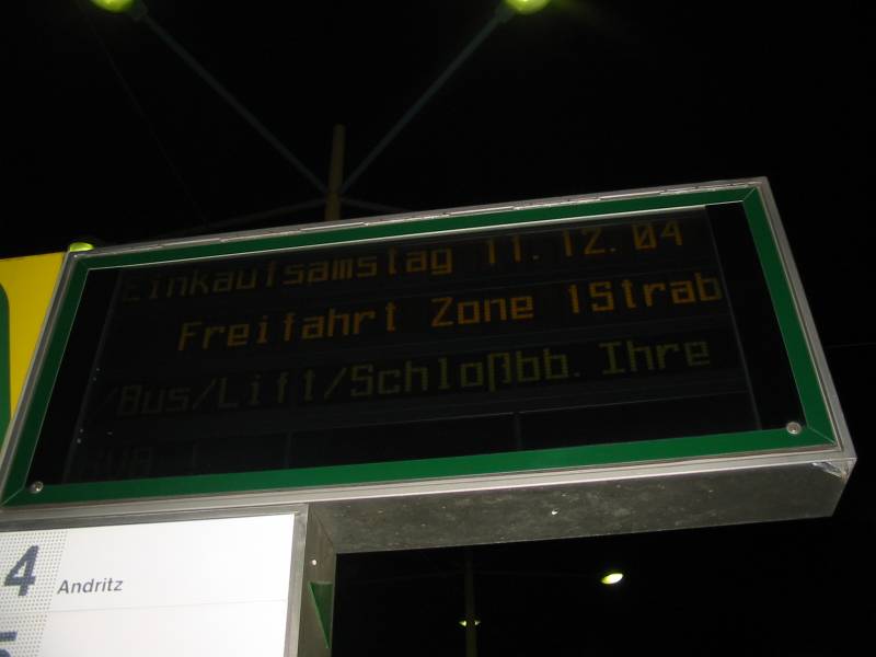 CameraCanon PowerShot A80Exposure1/250sExposure ModeAutoFlashFlash did not fire, compulsory flash modeFocal23.41mmMakeCanonOrientationHorizontal (normal)Scene ModeStandardWhite Balance ModeAutoCCD Width2mmF-Number49/10Metering ModeMulti-segmentDateigröße137100Breite800Höhe600 - [stvkr-a-fotos] [G] Neue Haltestellentafeln