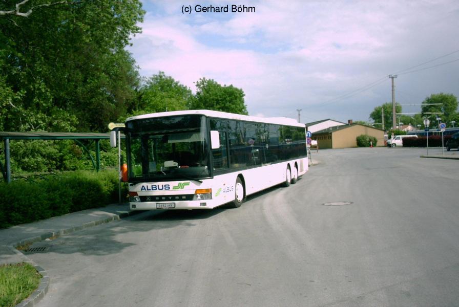 Letzte Woche war auf den VOR-Linien 332 und 333 anstatt eines DR-Dreiachsers einer von ALBUS im Einsatz. Die beiden Fotos zeigen den Bus beim Bahnhof in Stockerau.