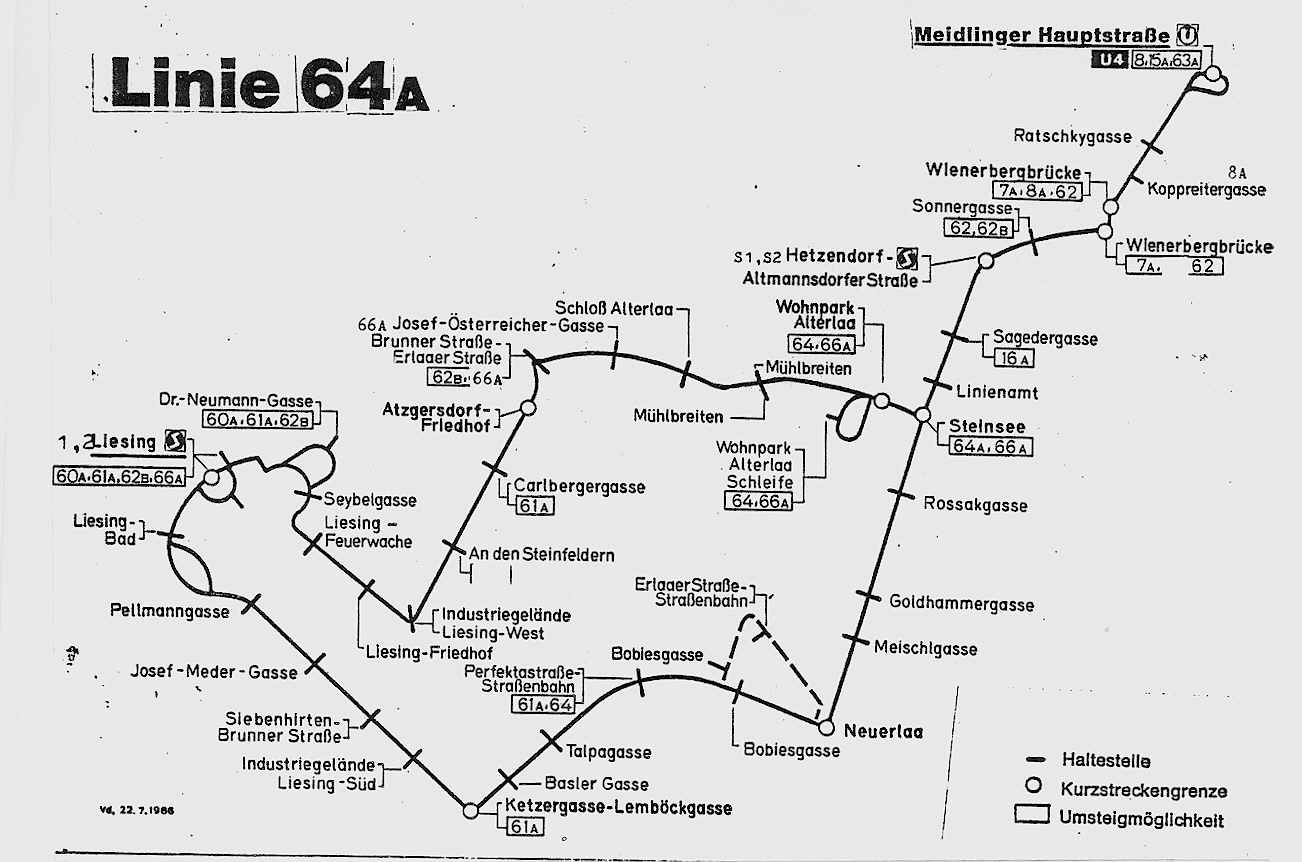 Ich hoffe dir mit diesem Linienplan helfen zu können. Linienplan der Linie 64A vom Stand 22.Juli 1986
