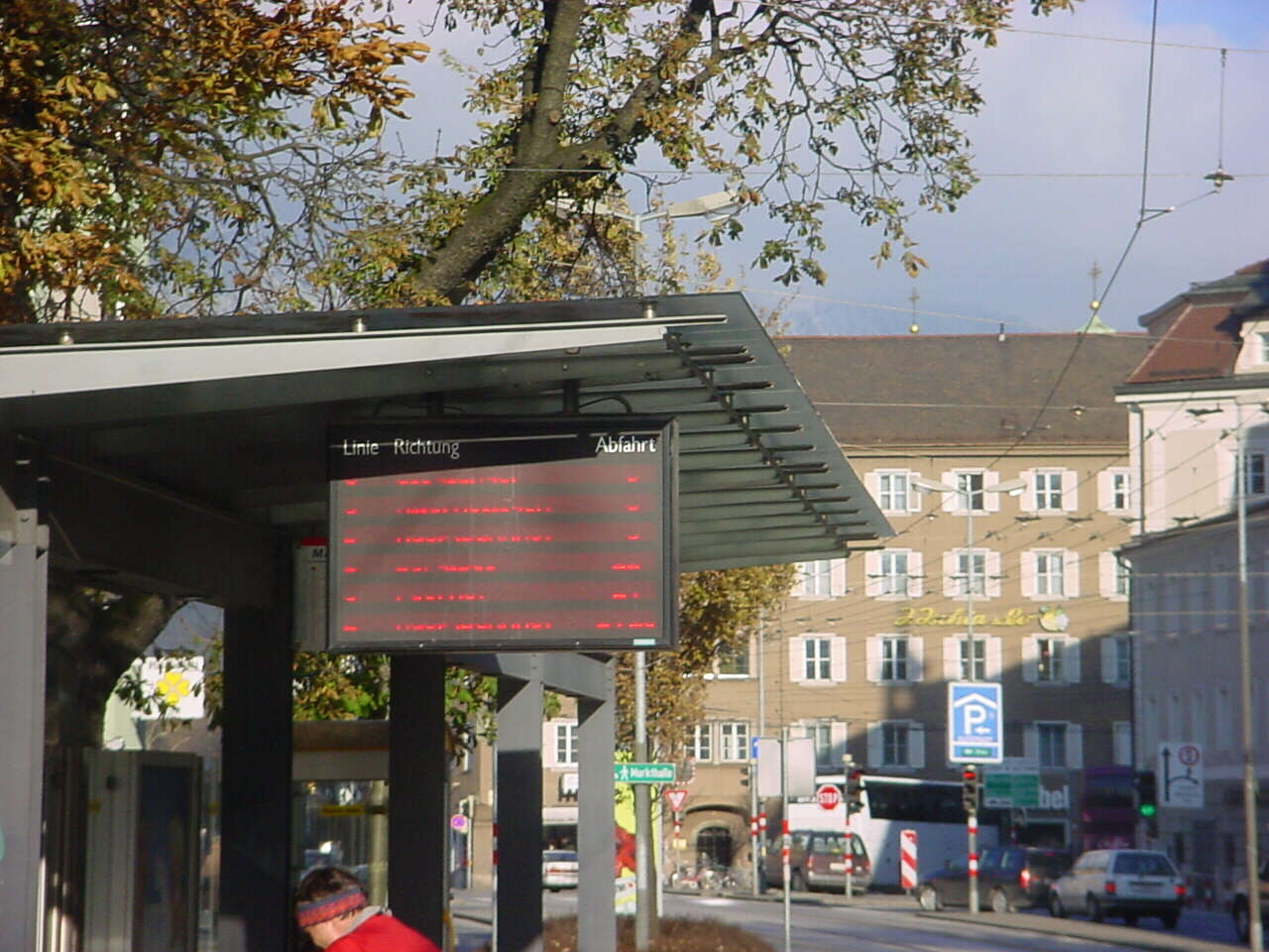 Eins der beiden aussergewöhnlich grossen Smartinfo-Display an der Haltestelle Marktplatz (Mitte).