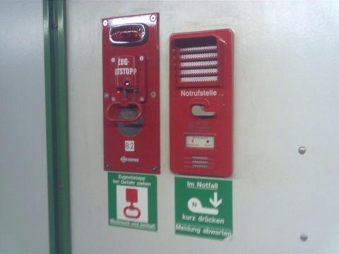 > Verkleidung einer Ubahnstation, rechts (rot) der Nothalt, daneben