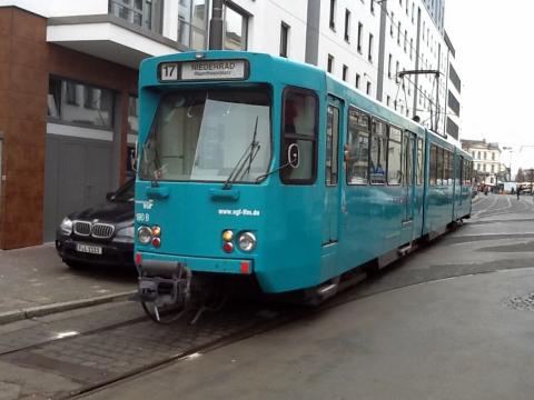 Eingesetzt war der Pt heute auf der Linie 19, die lediglich aus zwei morgendlichen und mittäglichen Schülerkursen besteht. Dass die Brosebänder 17 anzeigen, ist entweder der Faulheit des Fahrers oder dem Umstand, dass die 19 nicht vorhanden ist, geschuldet. Es ist jedenfalls ein typisches Beispiel dafür, dass man auch bei der Frankfurter Straßenbahn gerne nach dem bei den Wiener Linien beliebten Motto "Weil's wurscht is..." handelt und zeigt, dass die Straßenbahn (die man noch Mitte der 90er nahezu komplett stillegen wollte) in Frankfurt noch immer ein ziemlich ungeliebtes Kind ist.