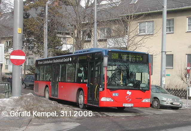 Das zweite Foto zeigt den zweiten roten Bus, Nr. 511, in Rodaun bei